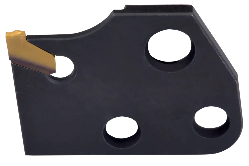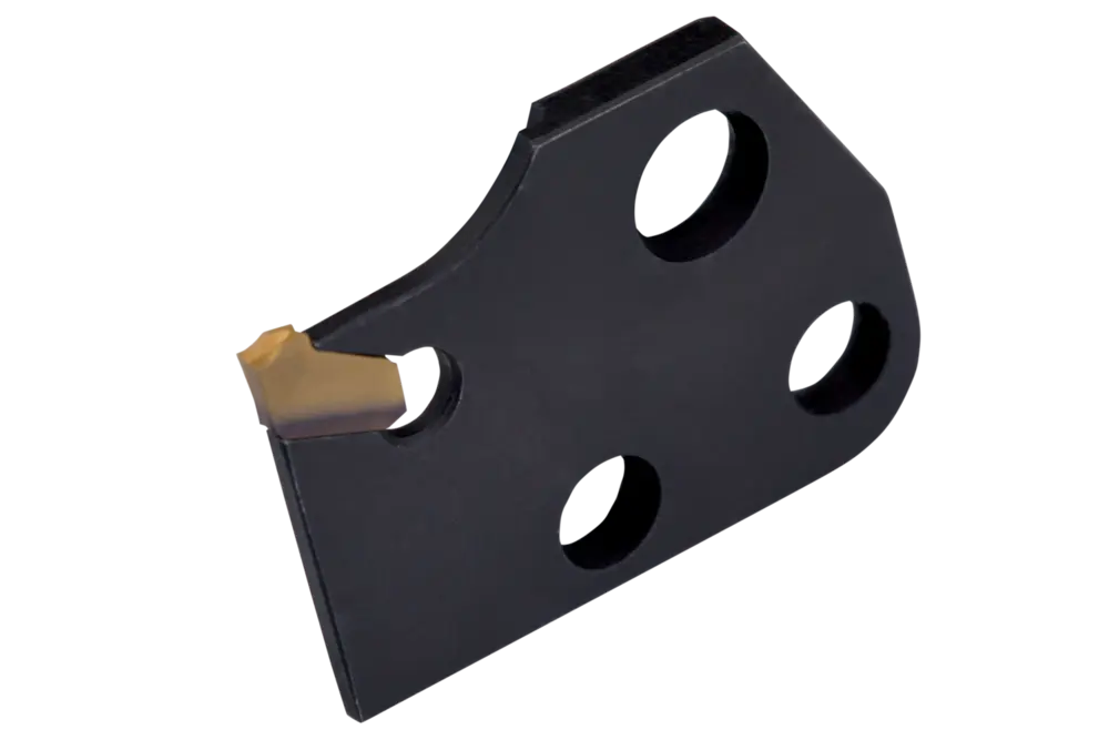 Лезвие инструмента для отрезки и проточки канавок с пружинным зажимом для крепления односторонней вставки с шириной режущей кромки 6,35 мм (обозначение LFMX 6.35-. ), сборка инструмента с MS-EN.. (KMP)(S), правая или левая сторона, вставка параллельна хвостовику для максимальной глубины проточки канавок 25 мм, для неглубокой и глубокой радиальной проточки канавок, отрезки и отрезки труб.