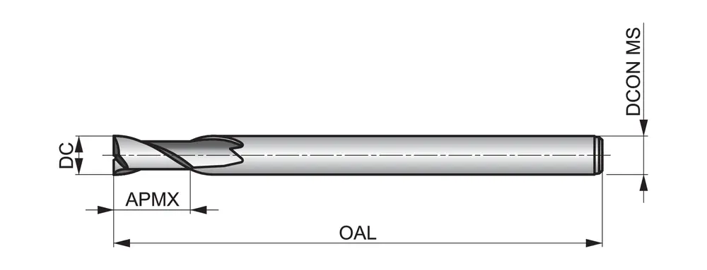 Короткая серия концевых фрез с 2 канавками, диаметром 16 мм, длиной режущей части 32 мм и общей длиной 200 мм, в соответствии со стандартом Dormer Pramet, с цилиндрическим хвостовиком 16 мм, из быстрорежущей стали HSS-E на основе кобальта с блестящей отделкой, углом наклона спирали 30° и передним углом 12° для фрезерования уступов и пазов в легкообрабатываемой стали, меди или медных сплавах.
