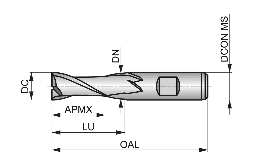 Короткое шлицевое сверло с 2 канавками, диаметром 12 мм с длиной режущей части 26 мм, общей длиной 83 мм и вылетом 37,5 мм с затылком, в соответствии со стандартом DIN 844 K с хвостовиком Weldon 12 мм, порошковая металлургическая быстрорежущая сталь HSS-E с покрытием TiCN, углом наклона спирали 30° и передним углом 12° для фрезерования уступов, фрезерования пазов и обработки под углом при автоматической обработке, обычной углеродистой и легированной стали, чугуна, меди или медных сплавов, а также титана или титановых сплавов.