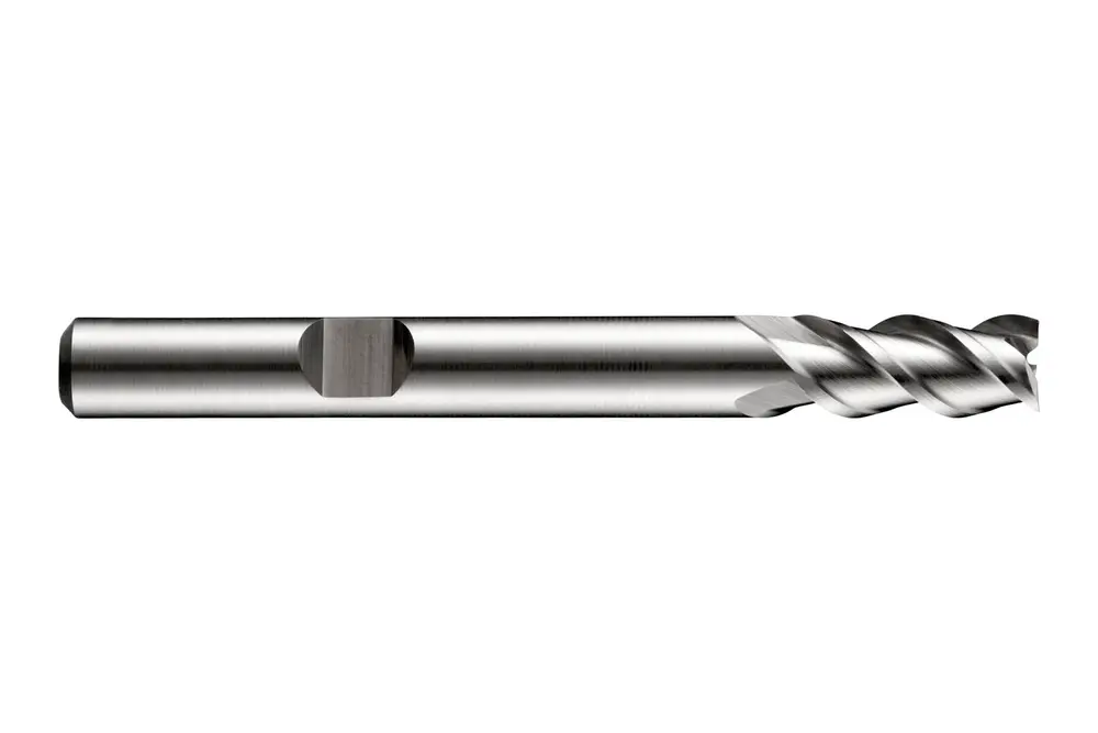 Короткая концевая фреза с 4 канавками, диаметром 12 мм, длиной резания 26 мм, общей длиной 83 мм и вылетом 37,5 мм с зачисткой шейки, в соответствии со стандартом DIN 844 K, с хвостовиком Weldon 12 мм, порошковая металлургическая быстрорежущая сталь HSS-E с полированной поверхностью, углом спирали 45° и углом заточки 12°, для фрезерования плеч, пазов и обработки наклонных поверхностей в углеродистых, легированных и инструментальных сталях, ферритных, мартенситных и супераустенитных, дуплексных или дисперсионно-упрочняемых нержавеющих сталях, чугуне, меди или медных сплавах и высокотемпературных сплавах.
