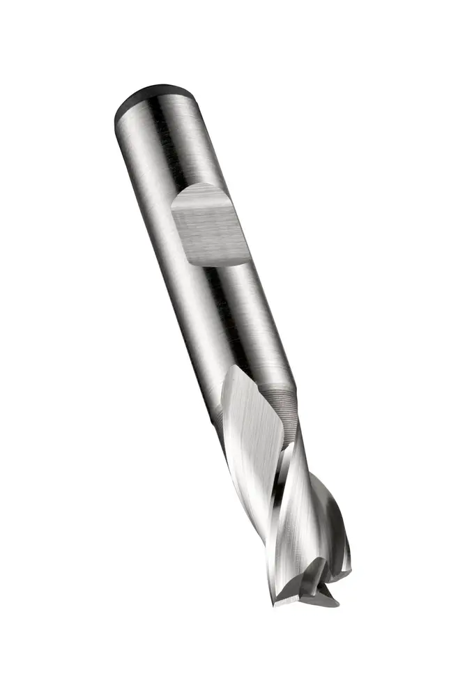 Сверло для обработки пазов сверхкороткой серии с 3 канавками, диаметром 18 мм, длиной режущей части 19 мм, общей длиной 79 мм и вылетом 30,5 мм с затылком, в соответствии со стандартом DIN 327 D с хвостовиком Weldon 16 мм, из порошковой металлургической стали HSS-E с блестящей отделкой, углом наклона спирали 30° и передним углом 12° для фрезерования уступов, фрезерования пазов и обработки под углом в обработке на станке и в обычной углеродистой стали, а также меди или медных сплавах.