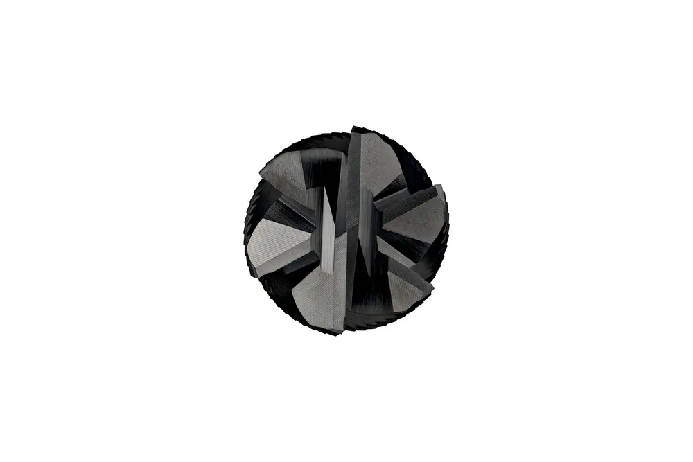 Черновая фреза короткой серии с асимметричным мелкошаговым профилем HRA и 6 канавками, диаметром 32 мм с длиной режущей части 53 мм, общей длиной 133 мм и вылетом 72,5 мм с затылком, в соответствии со стандартом DIN 844 K с хвостовиком Weldon 32 мм, порошковая металлургическая HSS-E с покрытием Alcrona, углом подъема спирали 35° и передним углом 12° для фрезерования уступов, фрезерования пазов и обработки под углом в легированной и инструментальной стали, нержавеющей стали, чугуне, меди или медных сплавах, а также жаропрочных сплавах.
