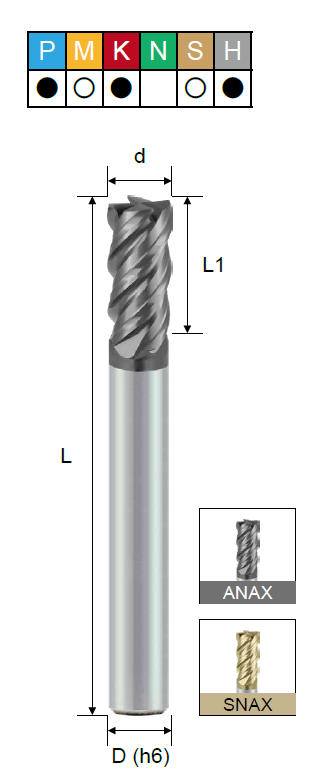 H (твердые материалы), K (чугун), M (нержавеющая сталь), P (сталь), S (титан) |