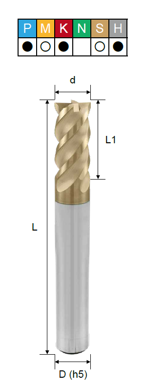 H (твердые материалы), K (чугун), M (нержавеющая сталь), P (сталь), S (титан) |