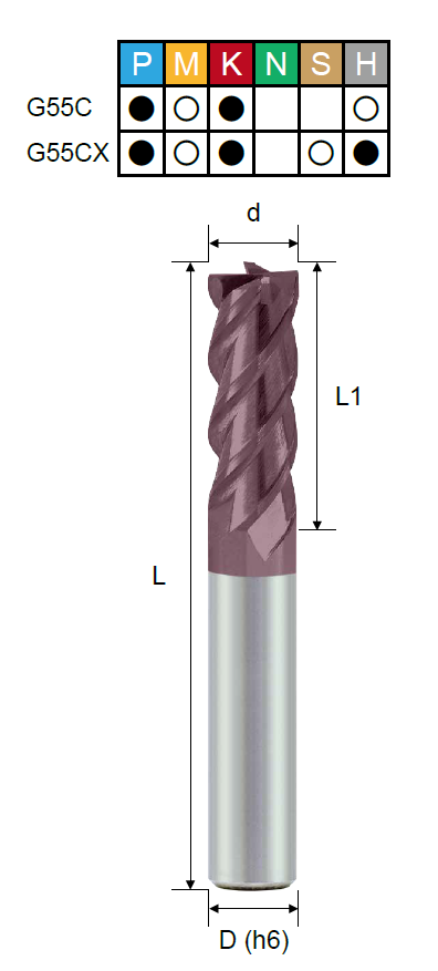H (твердые материалы), K (чугун), M (нержавеющая сталь), P (сталь), S (титан) |