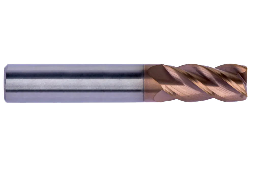 Стандартная концевая фреза с 4 канавками, диаметром 3 мм, длиной резания 9 мм и общей длиной 50 мм, по стандарту Dormer Pramet, с гладким хвостовиком 6 мм, из твердого сплава с покрытием TiSiN, углом наклона спирали 40° и углом заточки -6°, предназначена для фрезерования плеч, врезания, наклона, прогрессивного врезания и спирального фрезерования закаленных материалов.
