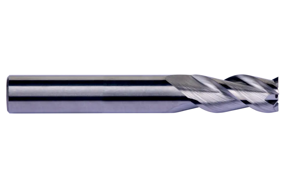 Короткая серия концевых фрез с 3 канавками, диаметром 10 мм, длиной режущей части 22 мм и общей длиной 70 мм, в соответствии со стандартом Dormer Pramet, с цилиндрическим хвостовиком 10 мм, цельный твердосплавный с блестящей отделкой, углом наклона спирали 40° с неравномерным шагом и передним углом 13° для фрезерования уступов, фрезерования пазов и винтового фрезерования в цветных металлах.