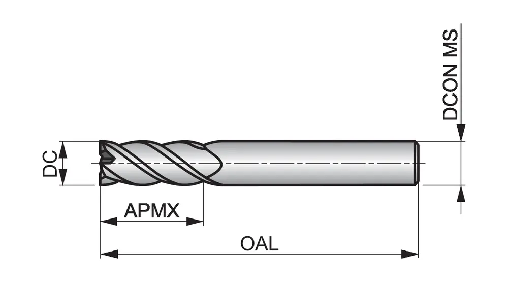 Короткая концевая фреза с 4 канавками, диаметром 12 мм, длиной резания 25 мм и общей длиной 75 мм, по стандарту Dormer Pramet, с гладким хвостовиком 12 мм, из твердого сплава с покрытием AlCrN, углом наклона спирали 40° и углом заточки 10°, предназначена для фрезерования плечевых поверхностей в стали и литой стали, ферритной, мартенситной и аустенитной нержавеющей стали, чугуне и высокотемпературных сплавах.