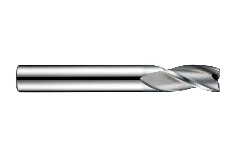 Короткое шлицевое сверло с 3 канавками, диаметром 18 мм с длиной режущей части 26 мм, общей длиной 92 мм и скошенными под углом 45° 0,2 мм углами, в соответствии со стандартом DIN 6527 L, с цилиндрическим хвостовиком 18 мм, цельное твердосплавное с покрытием AlCrN, углом подъема спирали 28° и передним углом 9° для фрезерования уступов, врезного фрезерования, фрезерования пазов и обработки под углом в стали и стальном литье, ферритной и мартенситной нержавеющей стали, чугуне и алюминиевом литье, а также меди или медных сплавах.