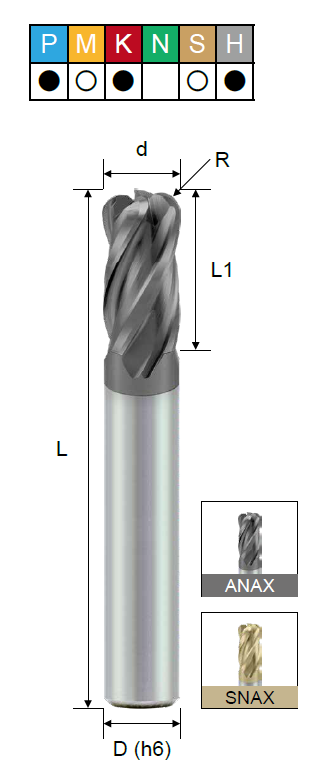 H (твердые материалы), K (чугун), M (нержавеющая сталь), P (сталь), S (титан) |