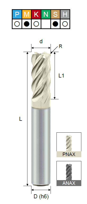 H (твердые материалы), K (чугун), M (нержавеющая сталь), P (сталь), S (титан) |