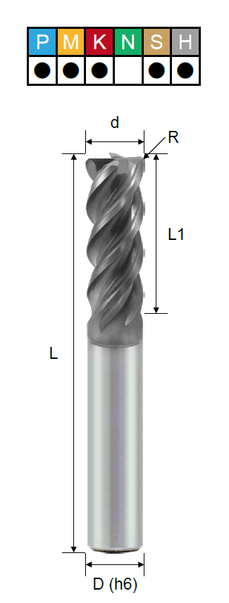H (твердые материалы), K (чугун), M (нержавеющая сталь), P (сталь), S (титан) |