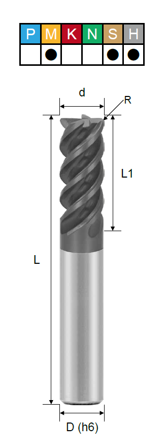 H (твердые материалы), M (нержавеющая сталь), S (титан) |