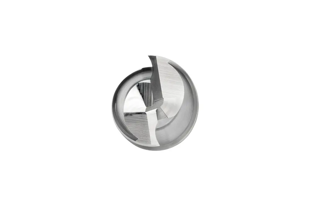 Концевая фреза короткой серии с 2 канавками, диаметром 5 мм, длиной режущей части 15 мм, общей длиной 50 мм, вылетом 20 мм, с затылком и радиусом скругления 0,1 мм, в соответствии со стандартом Dormer Pramet, с гладким хвостовиком 6 мм, цельная твердосплавная с полированной отделкой, углом спирали 30° и передним углом 20° для фрезерования уступов, фрезерования пазов, обработки наклонных поверхностей и винтового фрезерования в цветных металлах.