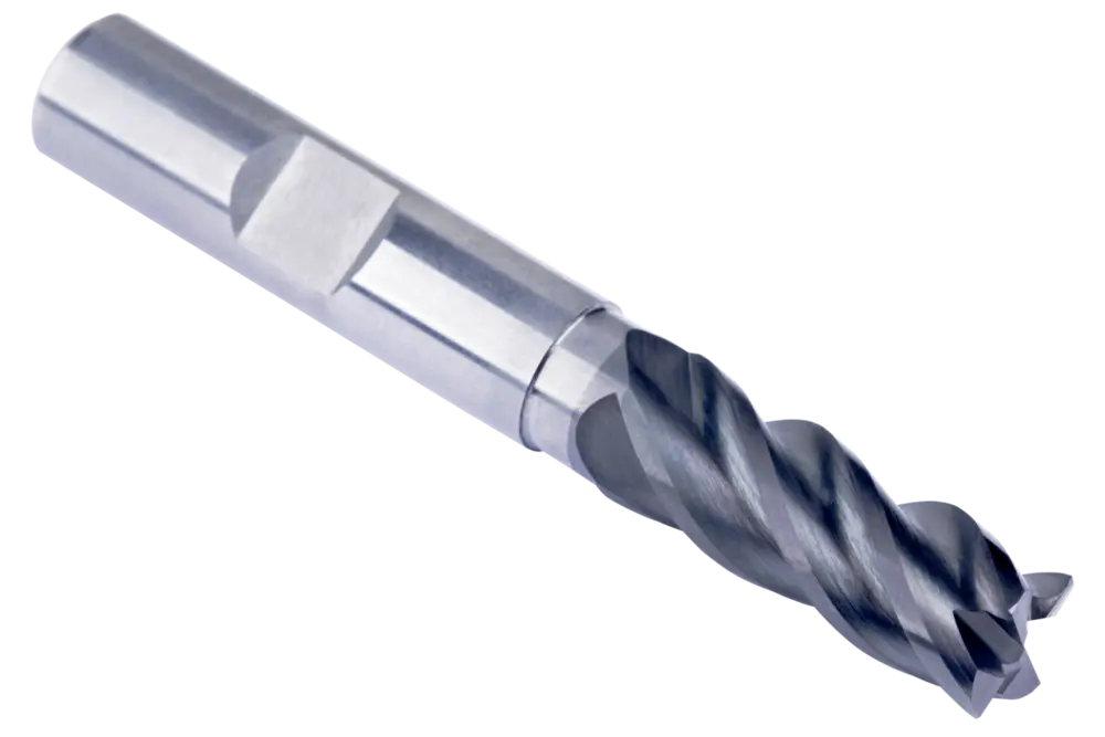 Стандартная концевая фреза с 4 канавками, диаметром 4 мм, длиной резания 11 мм, общей длиной 57 мм, вылетом 20 мм с закруглением шейки и радиусом скругления 0,1 мм, по стандарту Dormer Pramet, с хвостовиком Weldon 6 мм, из твердого сплава с покрытием AlCrN, углом спирали 40° и углом заточки 7°, для фрезерования плечевых поверхностей в стали и литой стали, нержавеющей стали, чугуне или высокотемпературных сплавах.