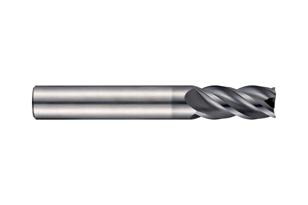 Короткая серия концевых фрез с закругленными углами, 4 канавками, диаметром 12 мм, длиной резания 25 мм, общей длиной 75 мм и закруглением углов 3 мм, в соответствии со стандартом Dormer Pramet, с гладким хвостовиком 12 мм, из твердого сплава с покрытием AlCrN, спиралью 40° с дифференциальным шагом и углом заточки 10°, предназначена для фрезерования плеч, врезания, прогрессивного врезания, наклонного и спирального фрезерования стали и литой стали, ферритной, мартенситной и аустенитной нержавеющей стали, чугуна и высокотемпературных сплавов.