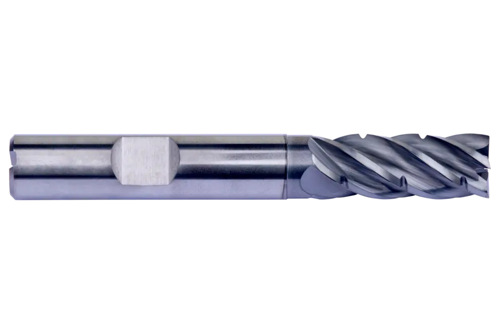 Короткая серия трохоидальных концевых фрез с разделителем стружки FS и 5 канавками, диаметр 10 мм, длина режущей части 25 мм, общая длина 72 мм, вылет 30 мм с закруглением шейки и радиусом скругления углов 0,2 мм, в соответствии со стандартом Dormer Pramet, с хвостовиком Weldon 10 мм, из цельного твердосплава с покрытием AlCrN, неравномерной спиралью и углом заточки 10°, для фрезерования плеч, наклонных фрез, спирального фрезерования и трохоидального фрезерования стали и литой стали, нержавеющей стали, чугуна или высокотемпературных сплавов.