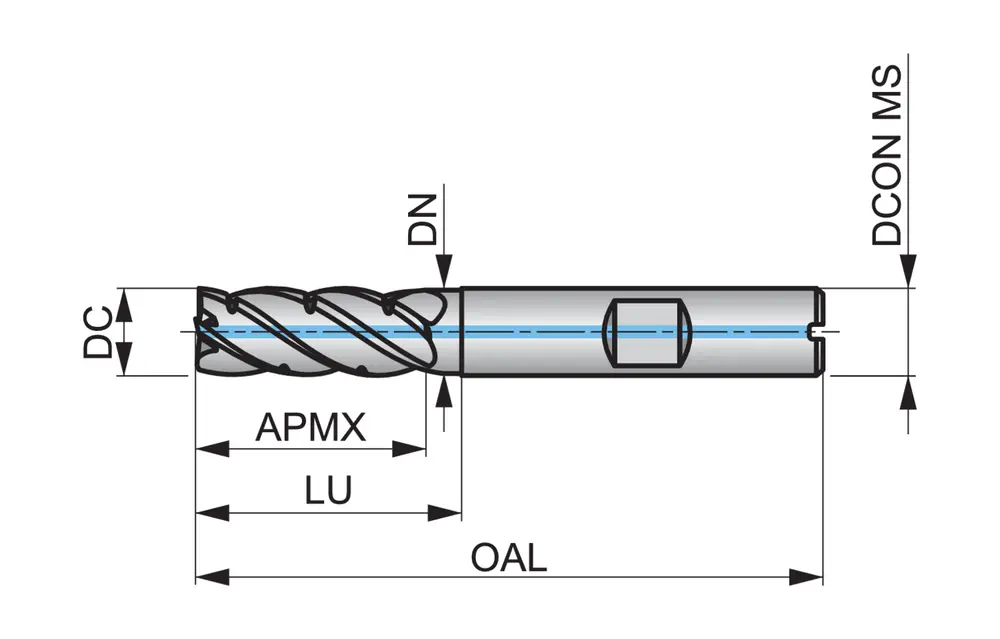 Короткая серия трохоидальных концевых фрез с разделителем стружки FS и 5 канавками, диаметр 16 мм, длина режущей части 39 мм, общая длина 92 мм, вылет 44 мм с закруглением шейки и радиусом скругления углов 0,3 мм, в соответствии со стандартом Dormer Pramet, с хвостовиком Weldon 16 мм, из цельного твердосплава с покрытием AlCrN, неравномерной спиралью и углом заточки 10°, для фрезерования плеч, наклонных фрез, спирального фрезерования и трохоидального фрезерования стали и литой стали, нержавеющей стали, чугуна или высокотемпературных сплавов.