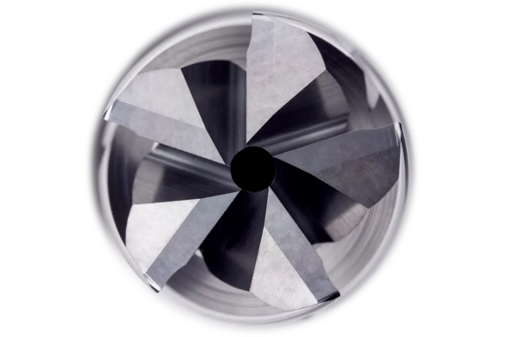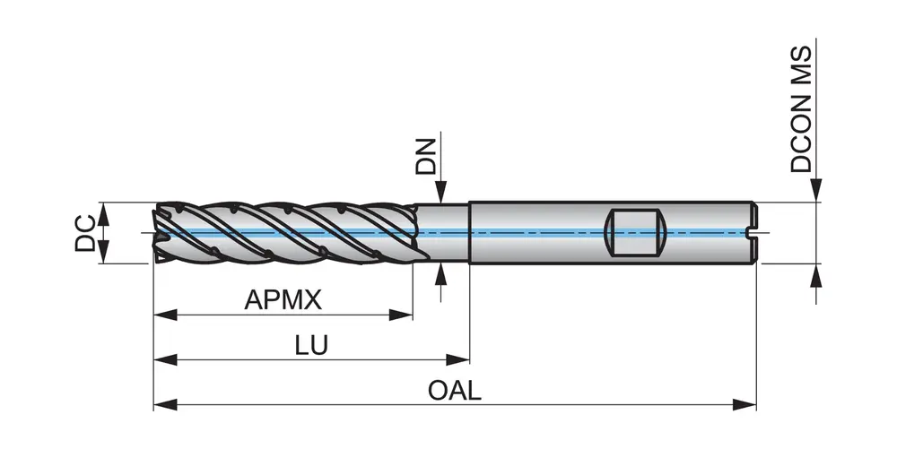 Длинная серия трохоидальных концевых фрез с разделителем стружки FS и 5 канавками, диаметр 12 мм, длина режущей части 42 мм, общая длина 100 мм, вылет 54 мм с закруглением шейки и радиусом скругления углов 0,2 мм, в соответствии со стандартом Dormer Pramet, с хвостовиком Weldon 12 мм, из цельного твердосплава с покрытием AlCrN, неравномерной спиралью и углом заточки 10°, для фрезерования плеч, наклонных фрез, спирального фрезерования и трохоидального фрезерования стали и литой стали, нержавеющей стали, чугуна или высокотемпературных сплавов.