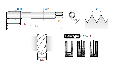 Метчик для сквозных отверстий HSS-E #12-28UNF-2B-80.0L