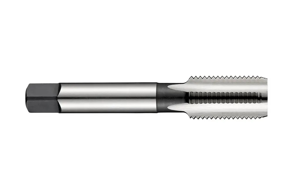 Метчик с прямой канавкой №3 с шлицем 2-3xP, для стальной резьбы PG11 с шагом 18 TPI и классом точности Normal, размеры по стандарту DIN 40432 с хвостовиком 14,0 мм и квадратным приводом 11,0 мм, из быстрорежущей стали с блестящей отделкой для нарезания сквозной или глухой резьбы 1,5xD в углеродистой стали, меди или медных сплавах.