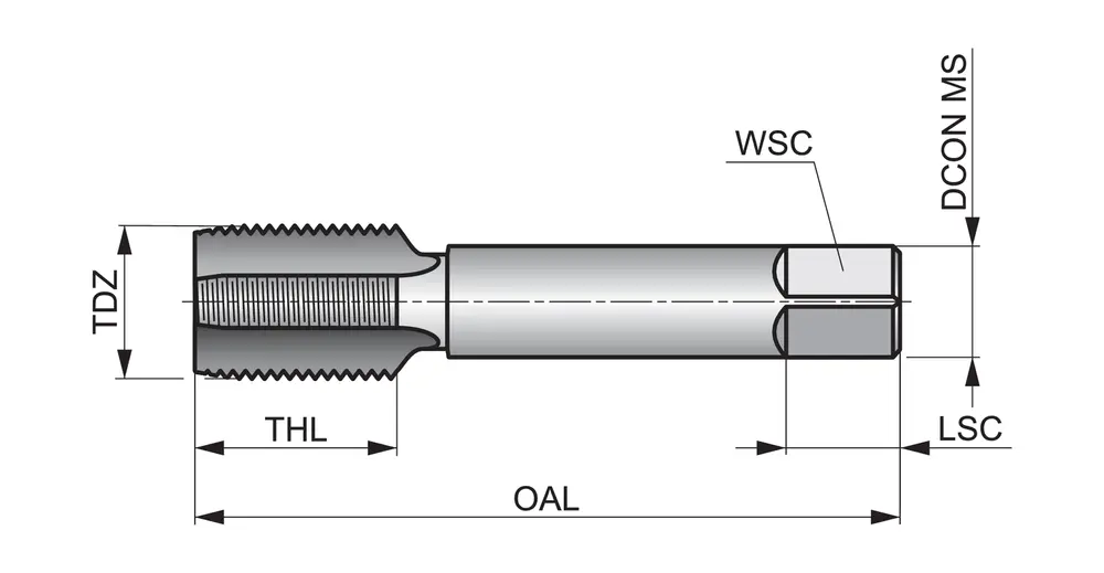 Метчик ручной с прямой канавкой №3 с шлицем 2-3xP для трубной резьбы G 1/8" по британскому стандарту с шагом 28 нитей на дюйм и классом точности "нормальный", размеры соответствуют стандарту ISO 2284, хвостовик 8,0 мм и квадратный привод 6,3 мм, из быстрорежущей стали с блестящей отделкой для сквозных или глухих отверстий диаметром 1,5xD в обработке на станке и в обычной углеродистой стали.