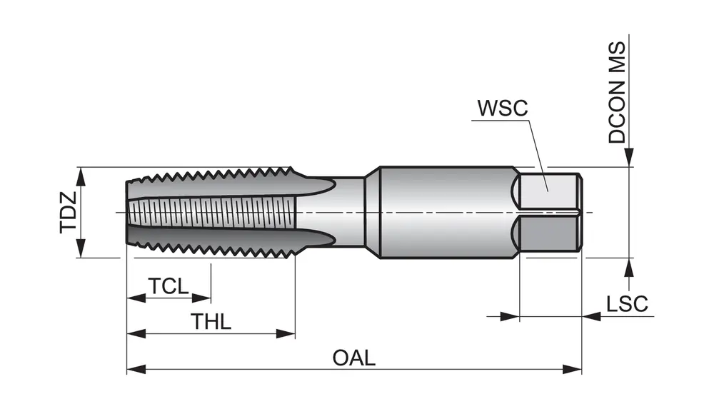 Метчик с прямой канавкой и фаской формы C, с шлицем 2-3xP, для национальной трубной конической резьбы NPT 3/8" с 18 витками на дюйм и нормальным классом посадки, размеры соответствуют стандарту ANSI B94.9 с хвостовиком 17,8 мм и квадратным приводом 13,5 мм, из быстрорежущей стали с блестящей отделкой для нарезания резьбы 1,5xD в сквозных или глухих отверстиях в стали с автоматической и обычной обработкой на станке, а также в меди или медных сплавах.