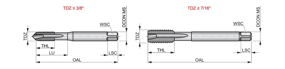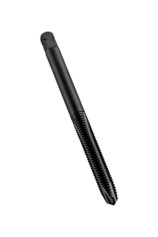 Метчик со спиральной подточкой и фаской формы B, со вторым заходом 3,5-5xP, для унифицированной национальной мелкой резьбы UNF 7/8", с шагом 14 нитей на дюйм и классом точности 2B, размеры по стандарту ISO 529, с хвостовиком 16,0 мм и квадратным приводным отверстием 12,5 мм, из порошковой стали HSS-E с обработанной паром поверхностью для нарезания резьбы 2,5xD в сквозных отверстиях общего назначения.