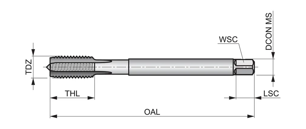 Метчик с прямой канавкой и фаской формы C, с шагом 2-3xP, для унифицированной национальной мелкой резьбы UNF 9/16", с шагом 18 витков на дюйм и классом точности 2B, размеры по стандарту DIN 374, с хвостовиком 11,0 мм и квадратным приводом 9,0 мм, из порошковой быстрорежущей стали HSS-E с блестящей поверхностью для нарезания сквозной или глухой резьбы 1,5xD в углеродистой стали с автоматической и обычной обработкой резанием.