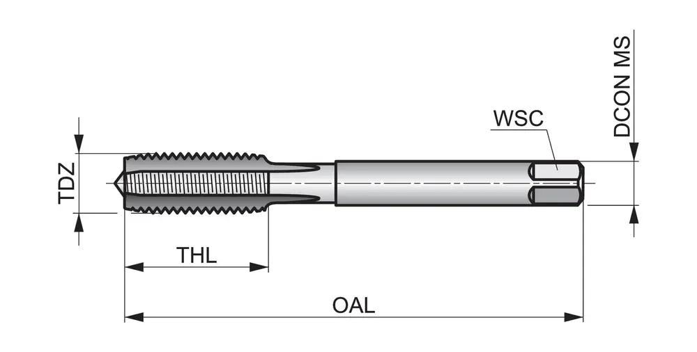 Комплект метчиков серийных с прямыми канавками № 9 для унифицированной национальной мелкой резьбы UNF 10 с шагом 32 TPI и классом точности 2B, состоящий из 1 метчика с усеченным профилем резьбы и шагом 3,5-5xP и 1 метчика с шагом 2-3xP, размеры по стандарту DIN 2181 с хвостовиком 6,0 мм и квадратным приводным отверстием 4,9 мм, из быстрорежущей стали с блестящей поверхностью для нарезания сквозной или глухой резьбы 1,5xD в легкообрабатываемых сталях и цветных металлах.