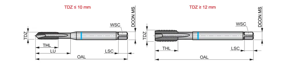 Метчик со спиральной головкой Blue Shark с фаской формы B, вторым заходом 3,5-5xP, для метрической резьбы ISO M22 с шагом 2,50 мм и классом точности 6H, размеры по стандарту DIN 376, с хвостовиком 18,0 мм и квадратным приводом 14,5 мм, изготавливается из порошковой стали HSS-E с обработанной паром поверхностью для нарезания сквозной резьбы 2,5xD в нержавеющей стали.