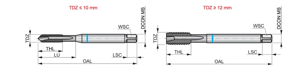 Метчик со спиральной канавкой Blue Shark с фаской формы B, вторым заходом 3,5-5xP, для метрической резьбы ISO M18 с шагом 2,50 мм и классом точности 6H, размеры по стандарту DIN 376, с хвостовиком 14,0 мм и квадратным приводом 11,0 мм, из порошковой стали HSS-E с покрытием Super-B для нарезания сквозной резьбы 2,5xD в ферритной, мартенситной и аустенитной нержавеющей стали.