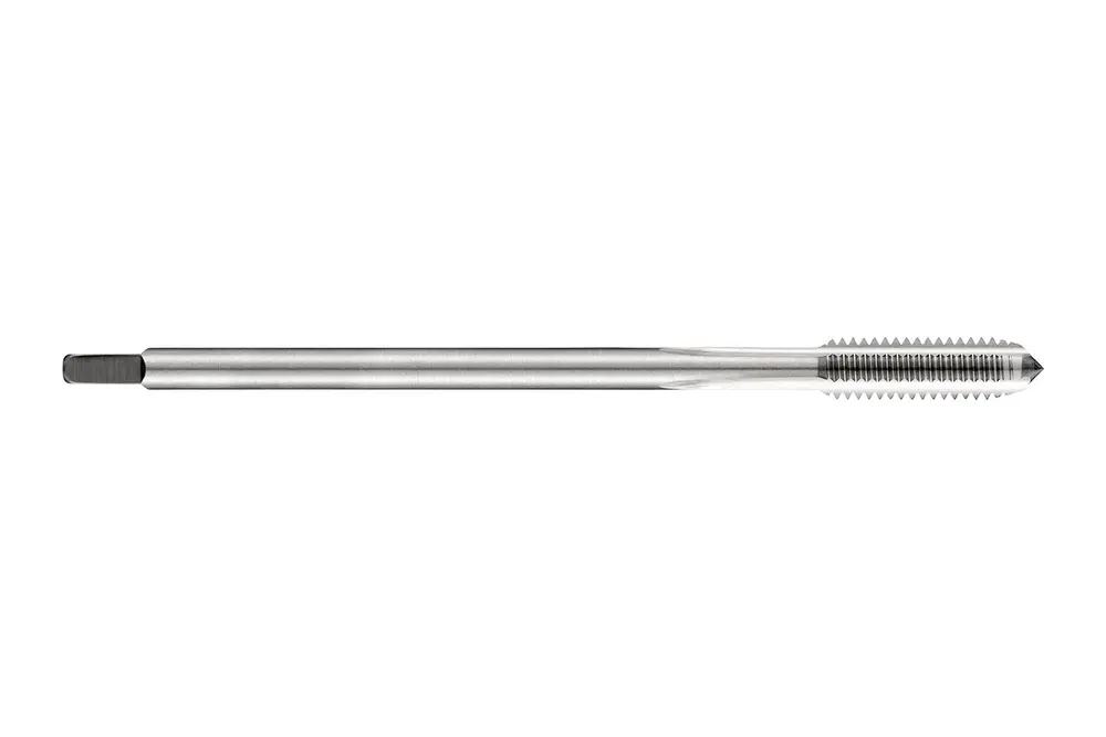 Метчик с прямой канавкой для метрической резьбы ISO M14 с шагом 2,00 мм и классом точности 6H, размеры по стандарту DIN 376 с хвостовиком 11,0 мм и квадратным приводом 9,0 мм, из порошковой металлургии HSS-E с блестящей отделкой для нарезания резьбы 1,5xD в сквозных или глухих отверстиях в станках с ЧПУ и из обычной углеродистой стали