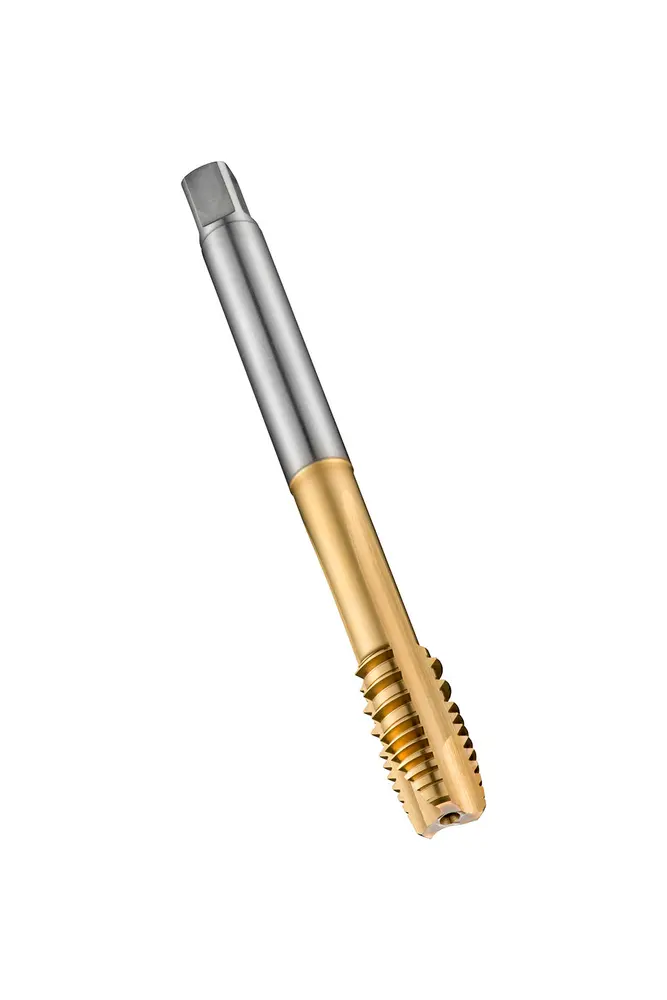 Метчик со спиральной подточкой и фаской формы B с заходной частью 3,5-5xP для метрической резьбы ISO M16 с шагом 2,00 мм и классом точности 6H, размеры по стандарту DIN 376 с хвостовиком 12,0 мм и квадратным приводом 9,0 мм, из порошковой стали HSS-E с покрытием TiN для нарезания сквозной резьбы 3xD в автоматически обрабатываемых деталях из углеродистой и легированной стали, а также деформируемых сталей, меди и медных сплавов.