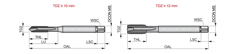 Метчик со спиральной подточкой и фаской формы B, со вторым заходом 3,5-5xP, для метрической резьбы ISO M5 с шагом 0,80 мм и классом точности 6G, размеры по стандарту DIN 371, с хвостовиком 6,0 мм и квадратным приводом 4,9 мм, из порошковой металлургической стали HSS-E с блестящей отделкой для нарезания сквозной резьбы 2,5xD в углеродистой стали, обработанной на станке, и обычной стали, а также кованого или литого алюминия.