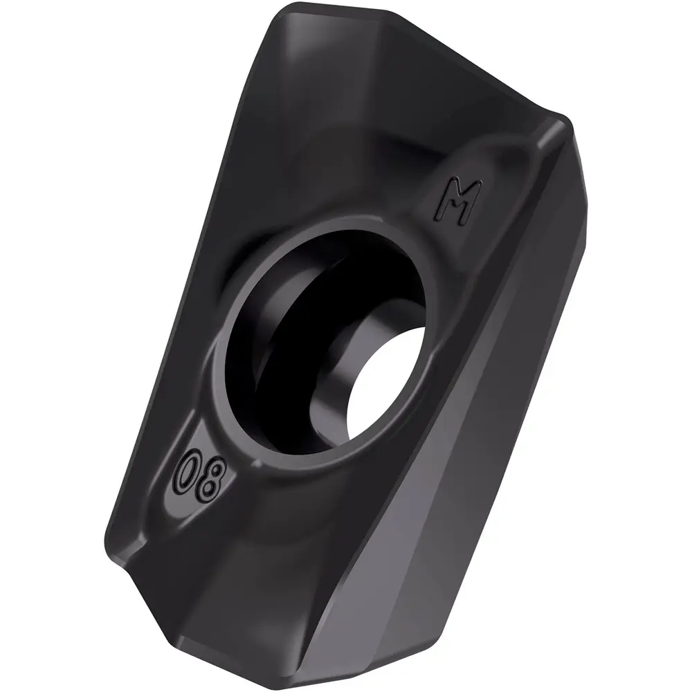 Односторонняя фрезерная пластина ADMX 1606, параллелограмм 85° для максимальной глубины резания 13,0 мм, с радиусом угла 0,8 мм, точностью индексации в соответствии с классом допуска ISO-M и геометрией M со скругленными режущими кромками и фаской, мелкозернистый карбид WC-Co с покрытием PVD 8215 в диапазонах ISO P10 -P20 и K10 -K25 для обработки стали и чугуна фрезами для обработки уступов SAD16E или фрезами для обработки уступов с удлиненной канавкой J(T)-SAD16E