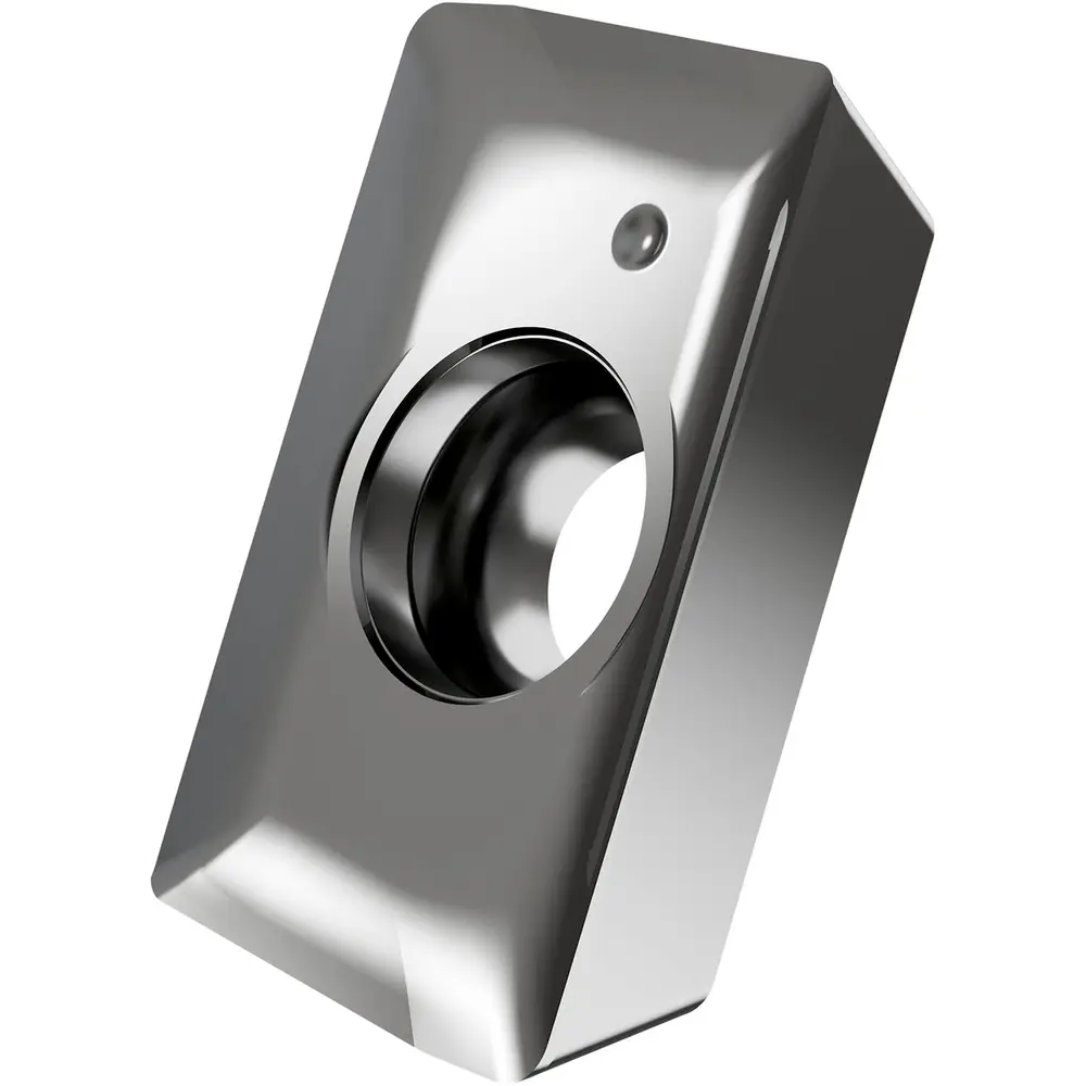 Односторонняя фрезерная пластина APET 1604 со стружколомами, параллелограмм 85° для максимальной глубины резания 15,0 мм, с радиусом при вершине 0,8 мм, точностью индексации в соответствии с классом допуска ISO-E и геометрией FA с острыми режущими кромками, мелкозернистый карбид WC-Co без покрытия HF7 в диапазоне классов прочности ISO N10 - N25 для обработки цветных металлов фрезами с уступами SAP16D