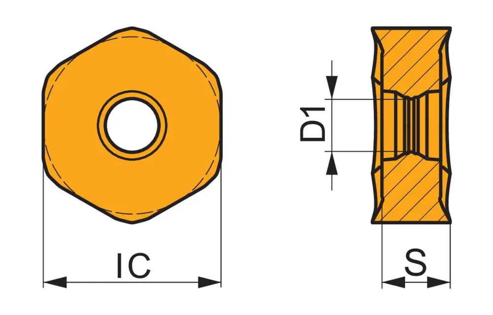Двухсторонняя фрезерная пластина HNGX 0906, шестигранная для максимальной глубины резания 5,0 мм, с точностью индексации в соответствии с классом допуска ISO-G и геометрией R со скругленными режущими кромками и фаской, карбид WC-Co с покрытием M9325 MT-CVD в диапазонах ISO P10 -P30 и K10 -K30 для обработки стали и чугуна торцевыми фрезами SHN09C