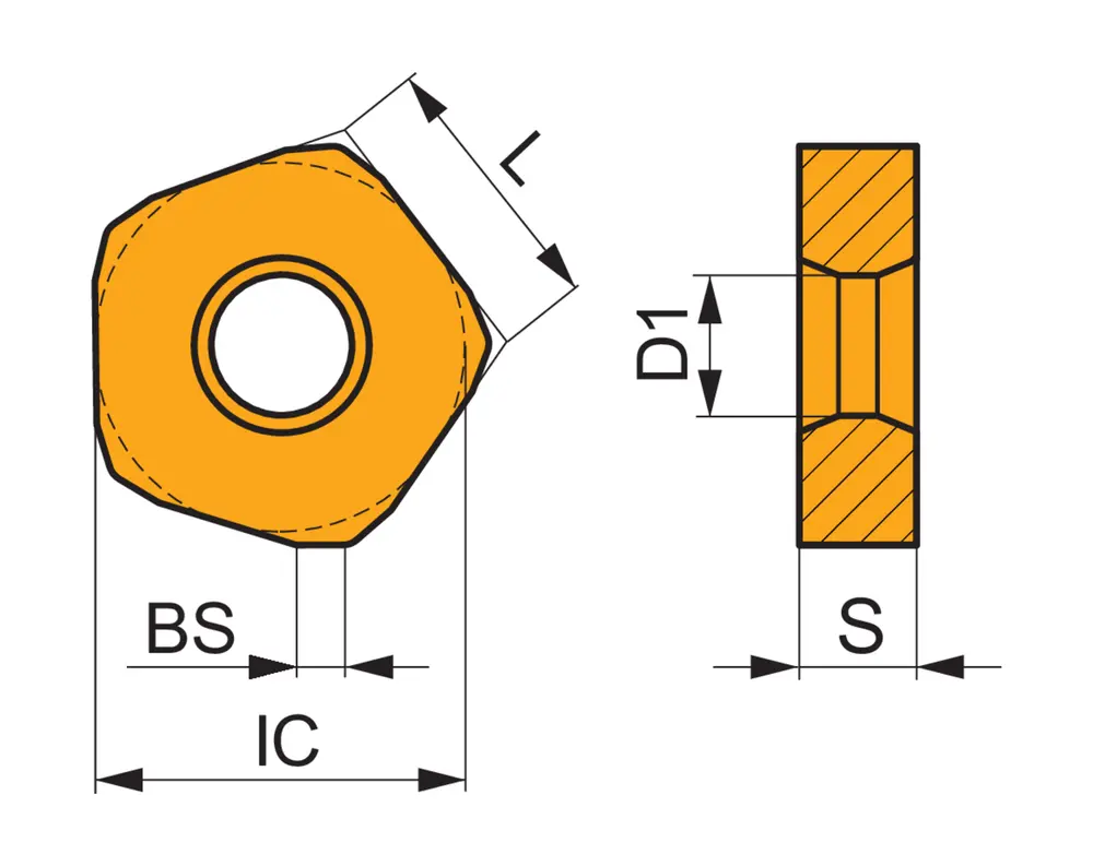 Двухсторонняя фрезерная пластина PNMQ 1308, пятиугольная для максимальной глубины резания 10,0 мм, с точностью индексации по классу допуска ISO-M со скругленными режущими кромками и фаской, карбид WC-Co с покрытием PVD M8345 для обработки торцевыми фрезами SPN13