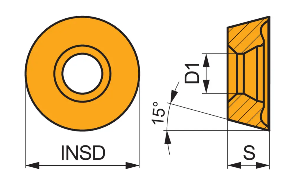 Односторонняя фрезерная пластина RDHT 0702 со стружколомами, круглая для максимальной глубины резания 2,0 мм, с точностью индексации в соответствии с классом допуска ISO-H и геометрией FA, мелкозернистый карбид WC-Co без покрытия HF7 в диапазоне прочности ISO N10 -N25 для обработки цветных металлов копировальными фрезами SRD07