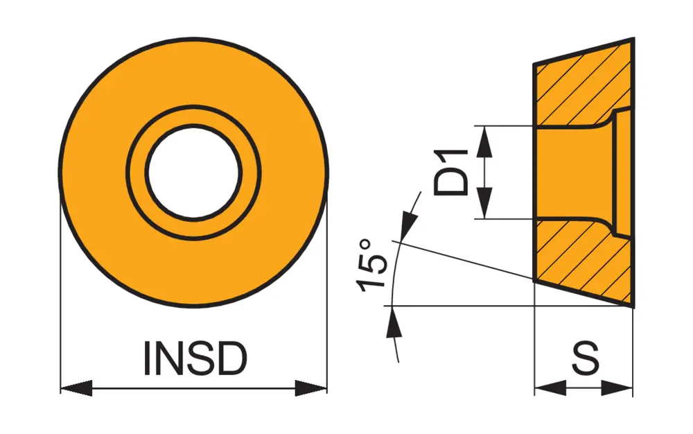Односторонняя фрезерная пластина RPET 1204 со стружколомами, круглая для максимальной глубины резания 3,0 мм, с точностью индексации в соответствии с классом допуска ISO-E, с закругленными режущими кромками и фаской, мелкозернистый карбид WC-Co с покрытием PVD M8330 в диапазоне классов прочности ISO P20 -P40 для обработки стали