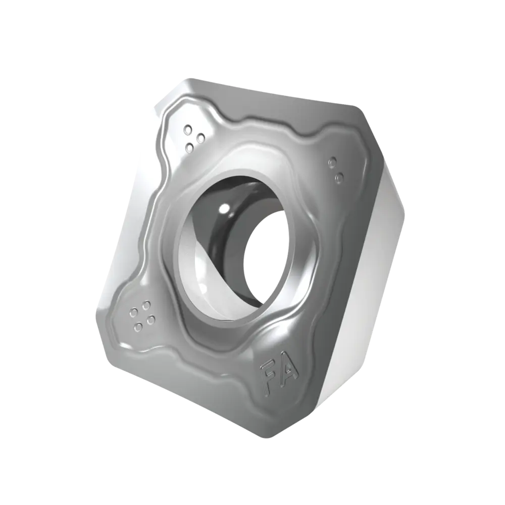 Односторонняя фрезерная пластина SDET 13T3 со стружколомами, квадратная для максимальной глубины резания 6,4 мм, с точностью индексации в соответствии с классом допуска ISO-E и геометрией FA с острыми режущими кромками, мелкозернистый карбид WC-Co без покрытия HF7 в диапазоне прочности ISO N10 - N25 для обработки цветных металлов торцевыми фрезами SSD13F