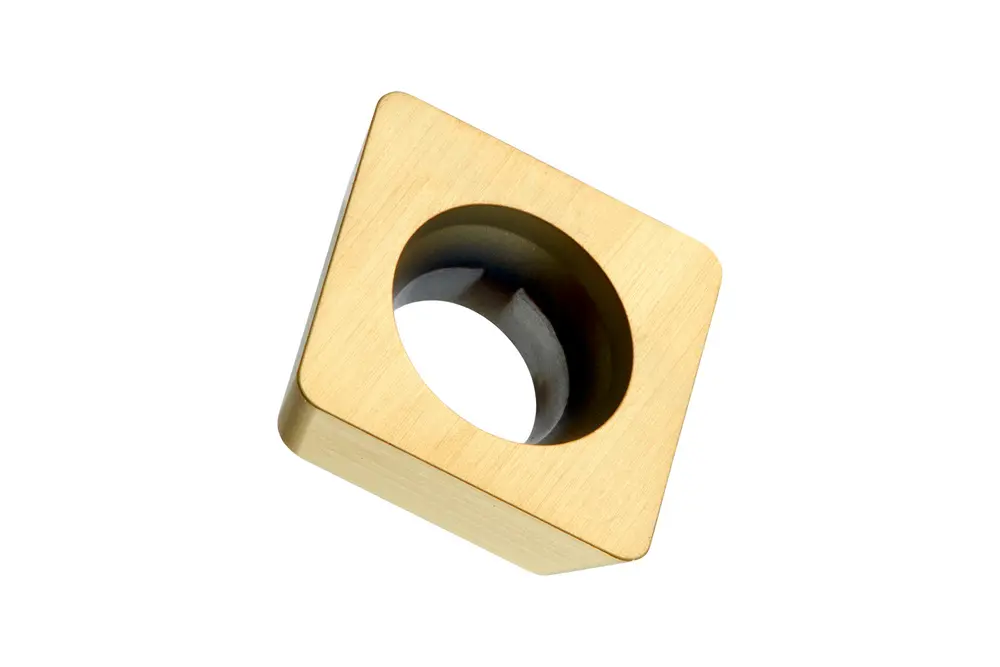 Односторонняя фрезерная пластина SDEW 0903 с плоской передней поверхностью, квадратная для максимальной глубины резания 4,5 мм, с радиусом угла 0,8 мм, точностью индексации в соответствии с классом допуска ISO-E со скругленными режущими кромками и фаской, мелкозернистый карбид WC-Co с покрытием PVD M8330 в диапазоне классов прочности ISO K20 -K40 для обработки чугуна фасочными фрезами SSD09