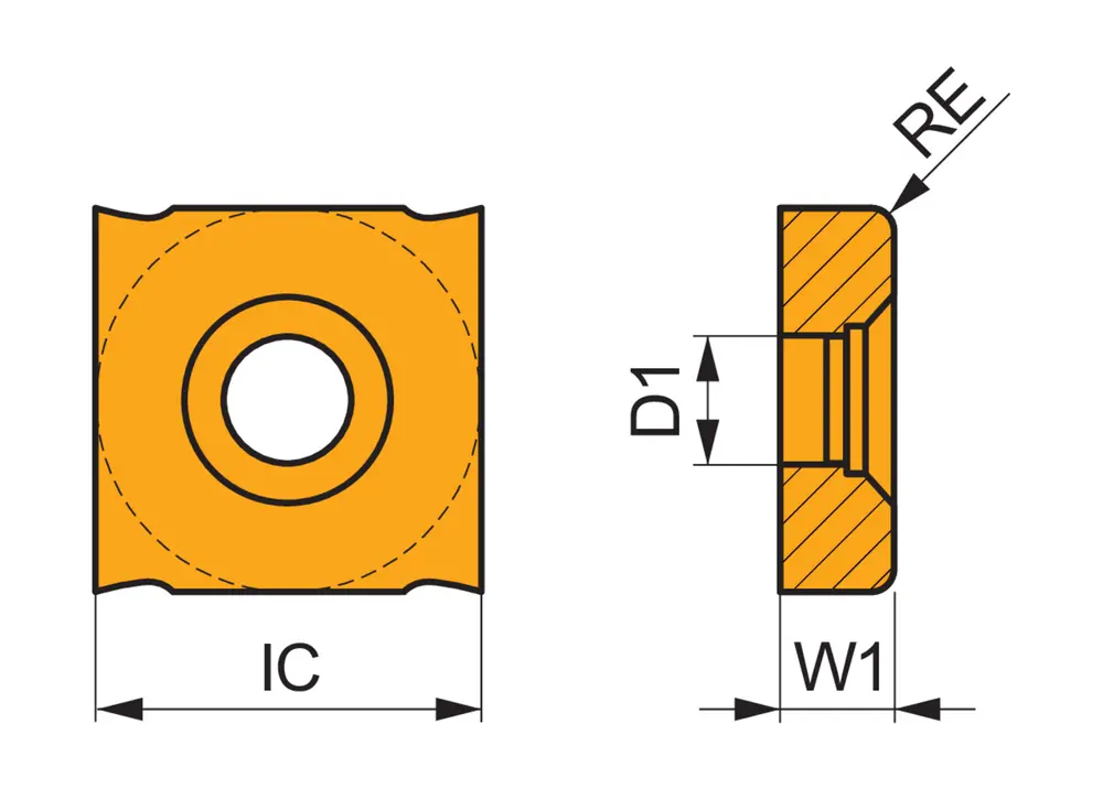 Односторонняя дисковая фрезерная пластина для ширины резания 12,0 мм с радиусом угла 1,0 мм и режущими кромками с фаской, мелкозернистый карбид WC-Co с покрытием PVD M8340 в диапазоне ISO P25 -P50 для обработки стали дисковыми фрезами S90SN