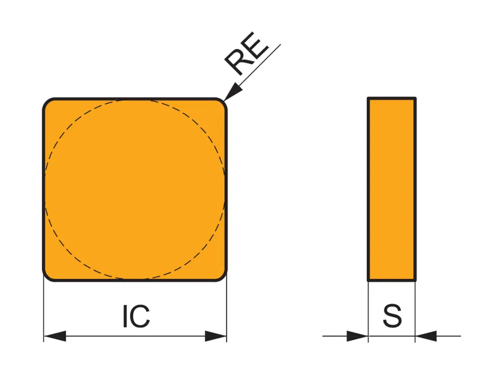 Двухсторонняя фрезерная пластина SNUN 1204 с плоской передней поверхностью, квадратная для максимальной глубины резания 9,0 мм, с радиусом закругления 0,8 мм, точность индексации в соответствии с классом допуска U по ISO, мелкозернистый карбид WC-Co с покрытием PVD M8330 в диапазоне классов прочности ISO K20 - K40 для обработки чугуна