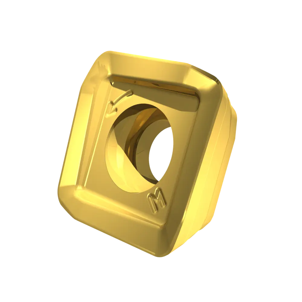 Односторонняя фрезерная пластина HFC, квадратная для максимальной глубины резания 1,9 мм, с радиусом угла 1,4 мм, точность индексации в соответствии с классом допуска ISO-H. Сплав M8330, PVD, WC-Co (< 1 мкм) подходит для стали и литой стали, чугуна. Геометрия M универсальна для широкого диапазона рабочих условий. Разработана с положительным передним углом, средней Т-образной фаской и закруглением режущей кромки для плавного фрезерования HFC.
