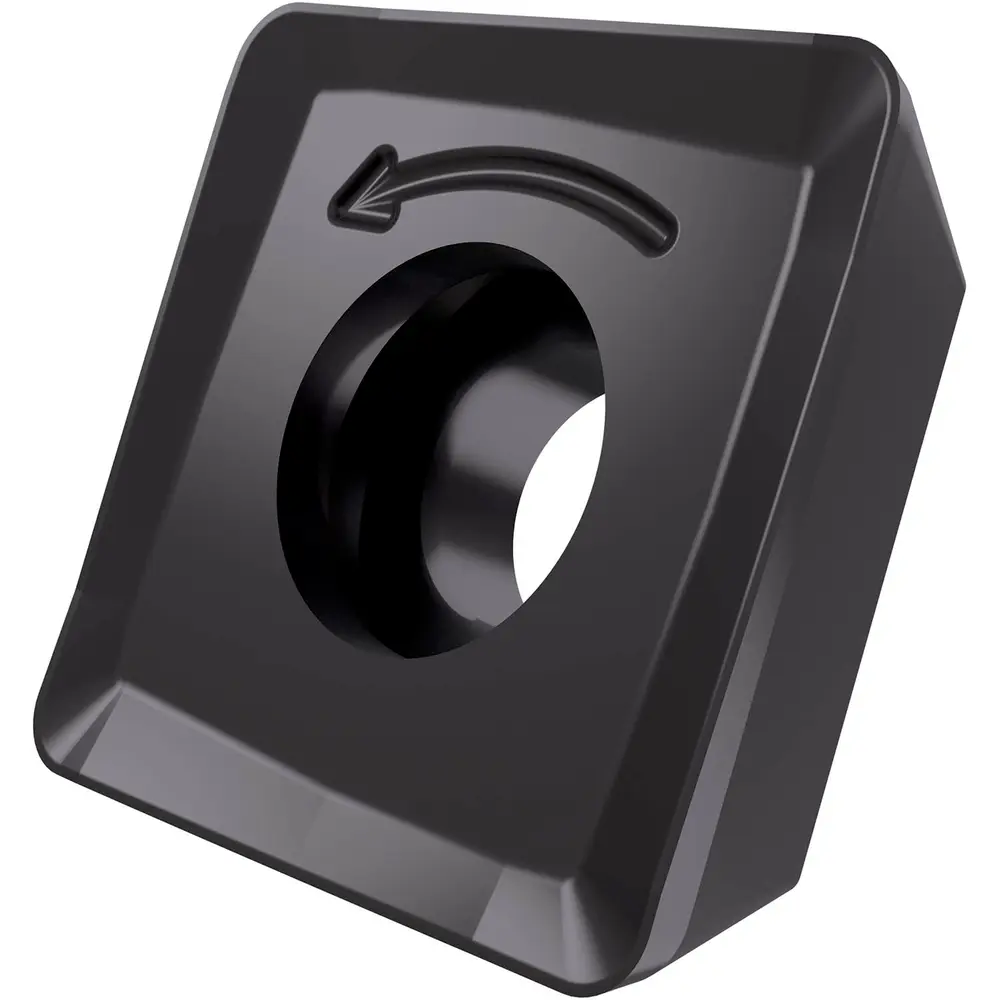 Односторонняя фрезерная пластина SOMT 09T3 со стружколомами, квадратная для максимальной глубины резания 8,0 мм, с радиусом угла 0,8 мм, точностью индексации в соответствии с классом допуска ISO-M и геометрией M, мелкозернистый карбид WC-Co с покрытием PVD 8215 в диапазоне ISO P10 -P20 для обработки стали фасочными фрезами N-SSO09 или уступчатыми фрезами SSO09