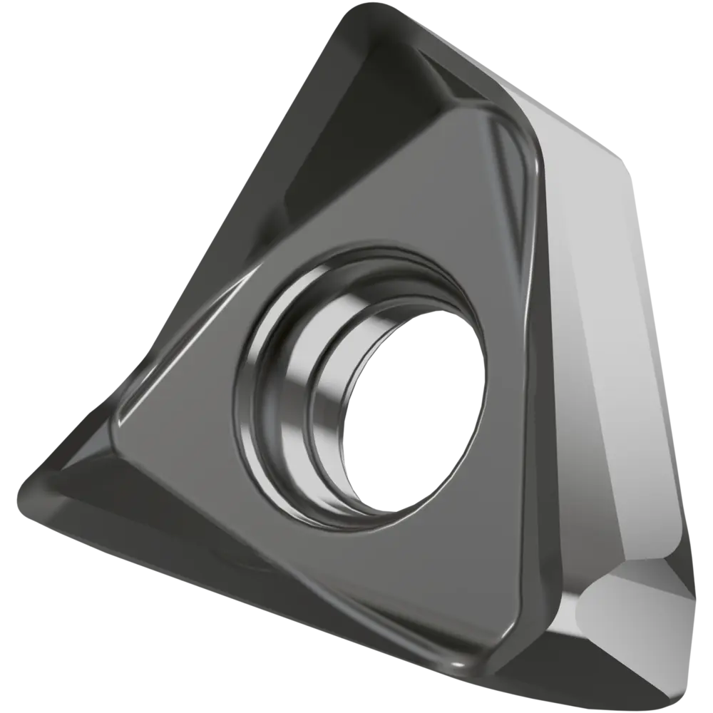 Двухсторонняя фрезерная пластина TNGX 1606, треугольная для максимальной глубины резания 10,0 мм, с радиусом при вершине 0,4 мм, точностью индексации в соответствии с классом допуска ISO-G и геометрией FA с острыми режущими кромками, мелкозернистый карбид WC-Co без покрытия HF7 в диапазоне классов прочности ISO N10 - N25 для обработки цветных металлов торцевыми фрезами STN16