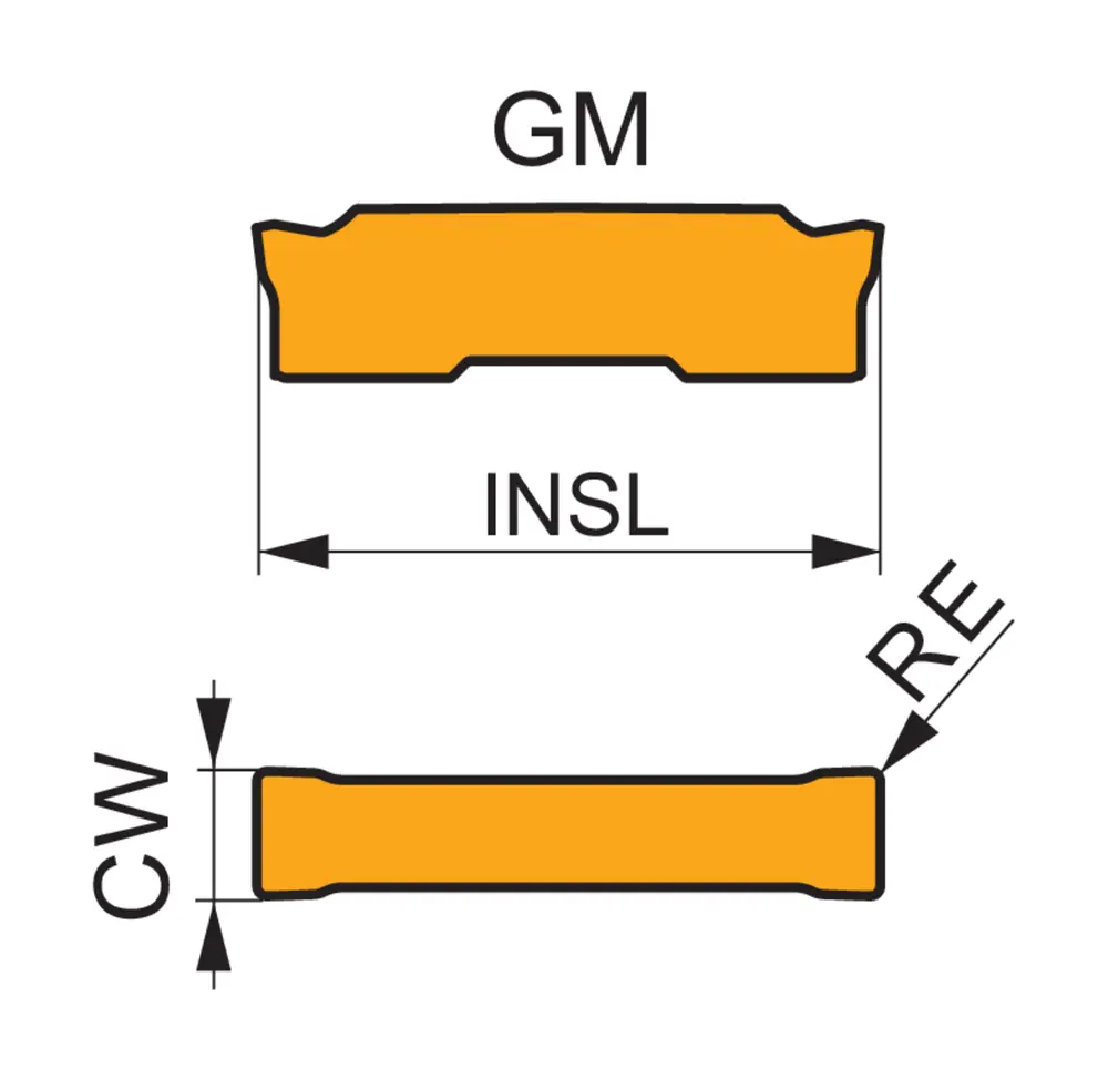 Двусторонняя отрезная и канавочная пластина длиной 25 мм с шириной режущей кромки 2 мм и радиусом угла 0,2 мм, допуск по ширине режущей кромки ±0,05. Сорт T7325 Функционально-градуированный карбид WC-Co с покрытием MT-CVD в диапазонах ISO M10-M25 и K15-K25 для обработки нержавеющей стали и чугуна. Универсальная геометрия GM для канавочной и продольной токарной обработки, а также непрерывного и прерывистого резания.