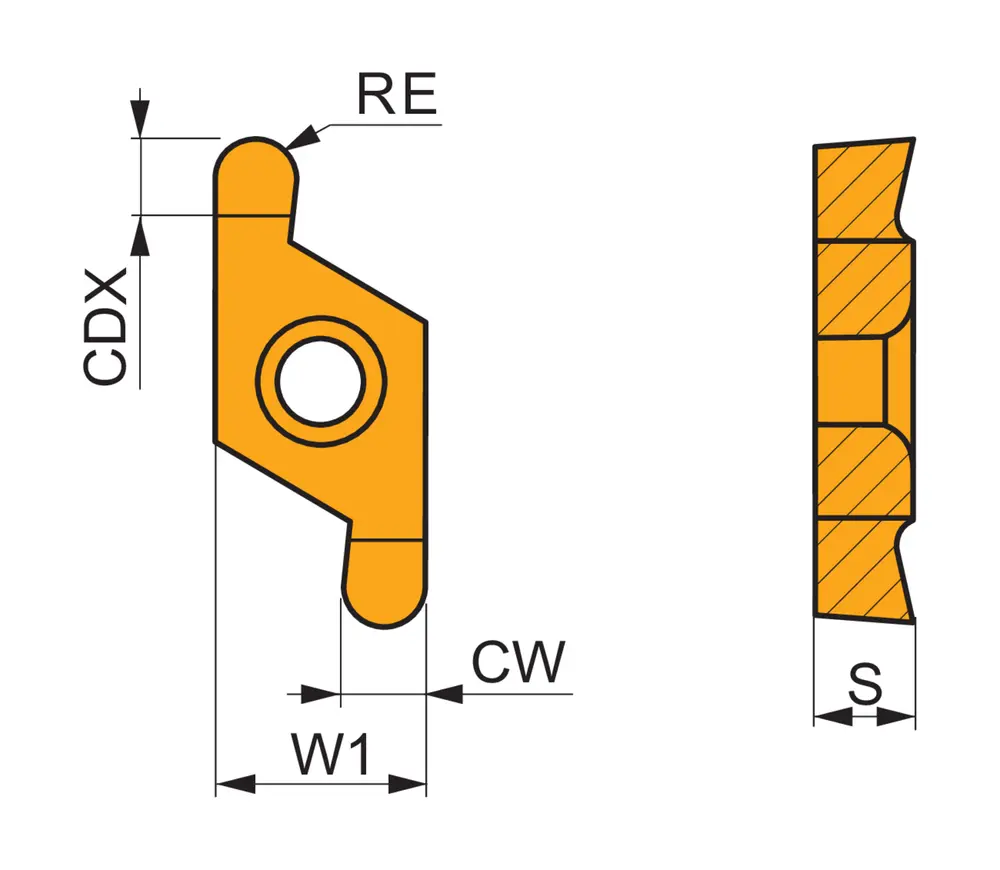 Двусторонняя вставка для проточки канавок под уплотнительное кольцо с шириной режущей кромки 3,09 мм и полным радиусом 1,5 мм, допуском ширины режущей кромки ± 0,03 мм и закругленными режущими кромками, карбид WC-Co с покрытием MT-CVD марки 6640 в диапазонах ISO P20-P40 и M20-M35 для обработки стали и нержавеющей стали в сочетании с инструментами для отрезки и проточки канавок DORMER PRAMET P61.SG -1 и GL6-S.. B